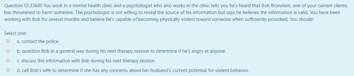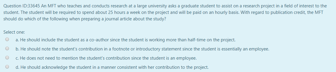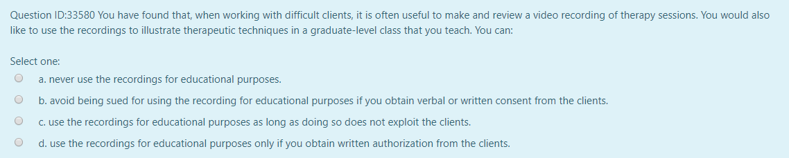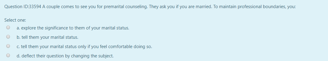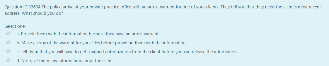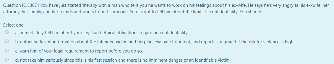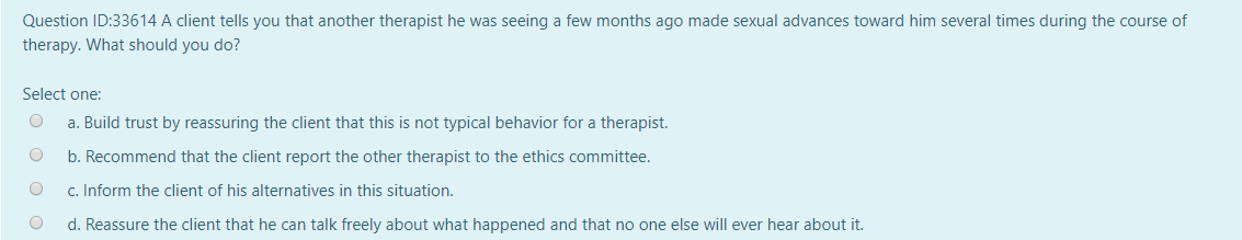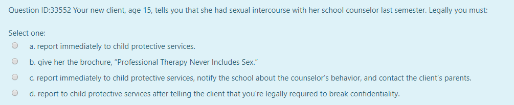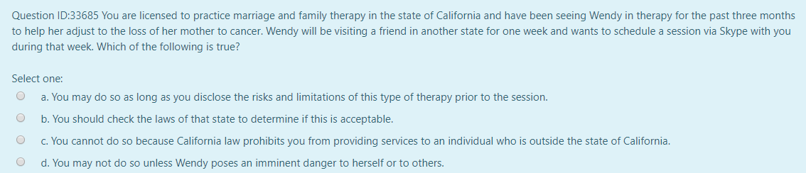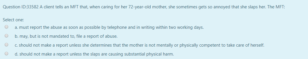 Select activity California MFT Law & Ethics Sample Exam Answer Key