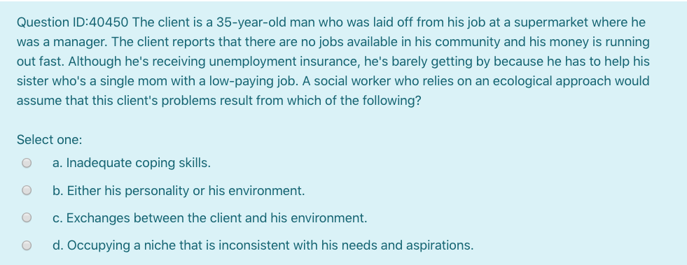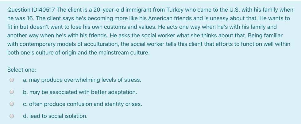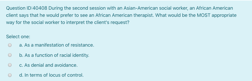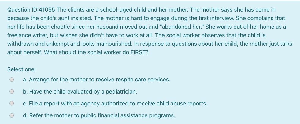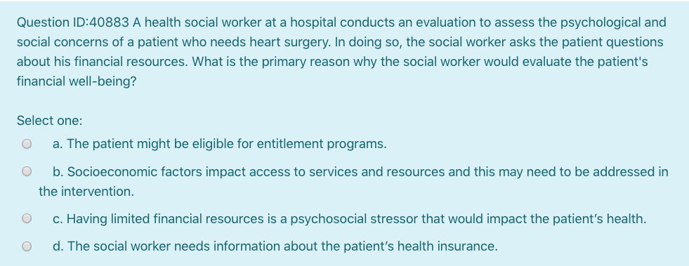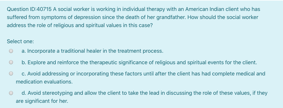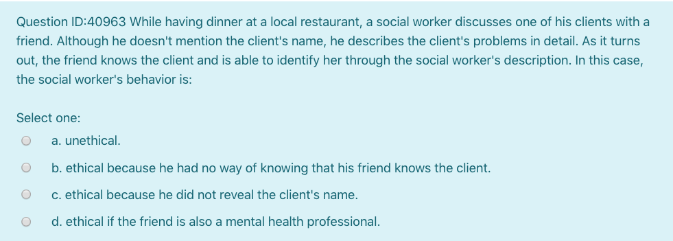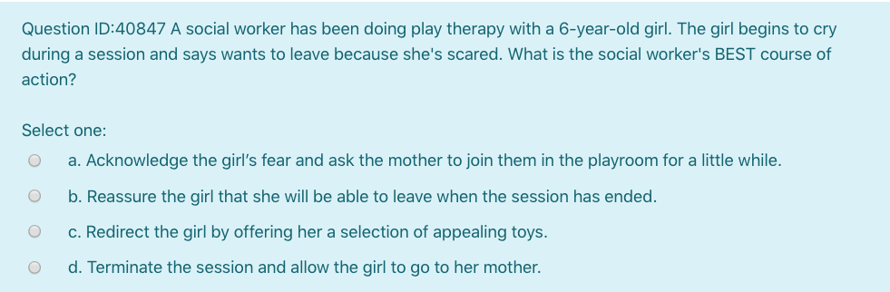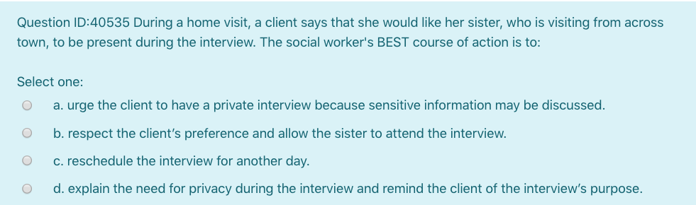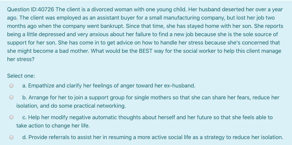 Select activity Social Work Bachelors Sample Exam Answer Key